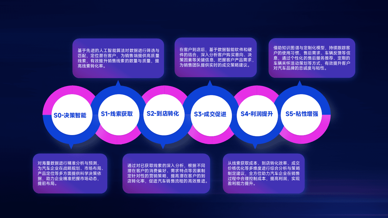 通过拓宽潜在客户来源、、优化线索分配并提高到店转化率,,以增强销售效率。。同时,,,,利用线索数据不断优化分析模型,,,有效提升转化率,,扩大营销影响力。。